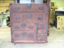分厚い欅材に鶴の金具という縁起の良い組み合わせで仕立てられた仙台箪笥です。